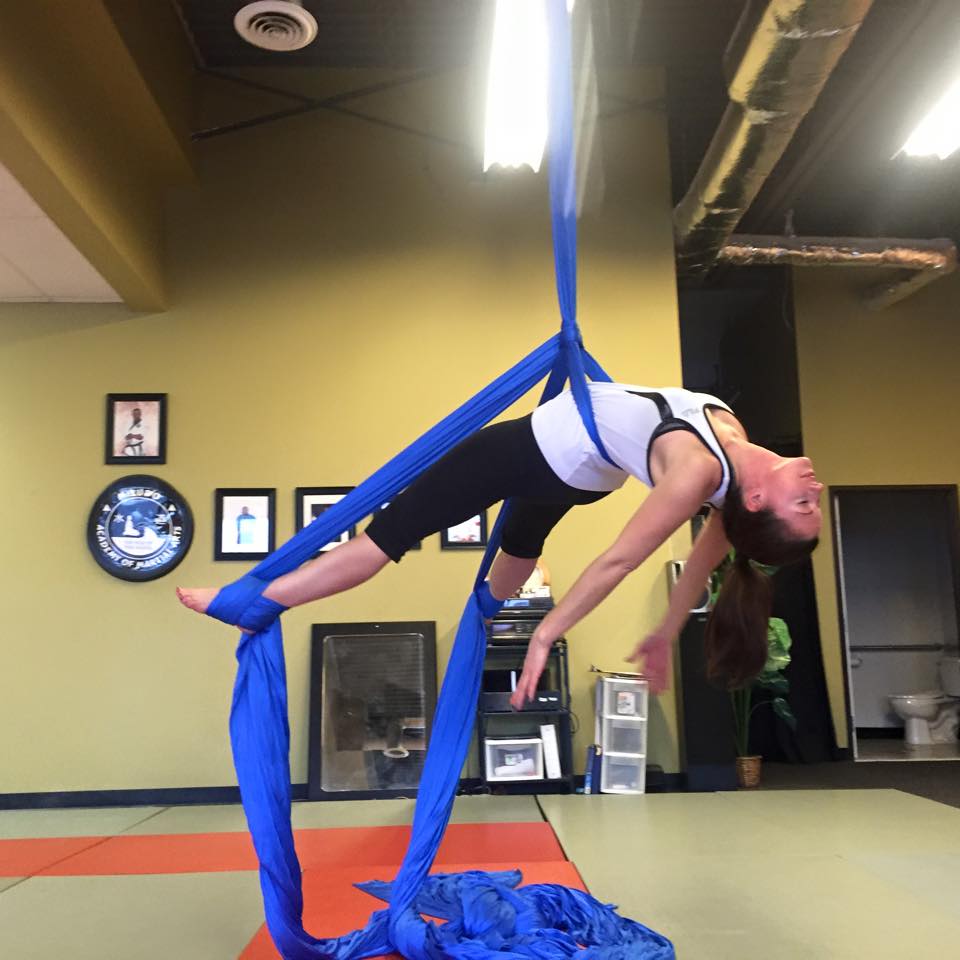 Including: Aerial Silks/Straight Fabric, Static Trapeze, Corde Lisse (Smooth rope), Lyra (Aerial Hoop), Aerial Hammock, Aerial Yoga, Flexibility/Conditioning Workshops, and partner Acro Yoga.